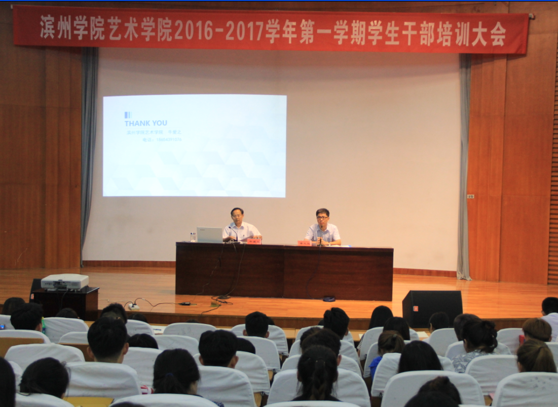 8月28日下午,千亿国际qy18vip在学苑会堂第二报告厅召开2016-2017学年第一学期学生干部培训大会。会议由千亿国际qy18vip学生管理科科长秦玉国主持,千亿国际qy18vip党总支副书记牛爱之作了题为《新形势下如何做一名合格的学生干部》的专题报告。千亿国际qy18vip全体辅导员和三百多名学生干部聆听了报告。
