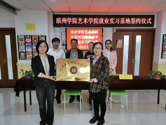 为进一步深化校企合作,落实毕业生就业实习相关工作,2021年5月13日下午,千亿国际qy18vip党总支书记王秀丽,副院长李建军带领就业指导科、综合办公室相关人员赴滨州市艺馨美术学校走访考察就业实习基地,并举行了座谈会和就业实习基地挂牌仪式。
