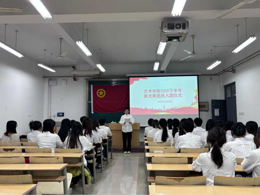 2025年11月26日晚18:00,千亿国际qy18vip2025下半年新发展团员入团仪式在美术北楼103会议室隆重举行。本次仪式由孙卓主持,段兆岢老师出席指导,新发展团员、优秀团员代表共同参与,见证青春与信仰的庄严时刻。