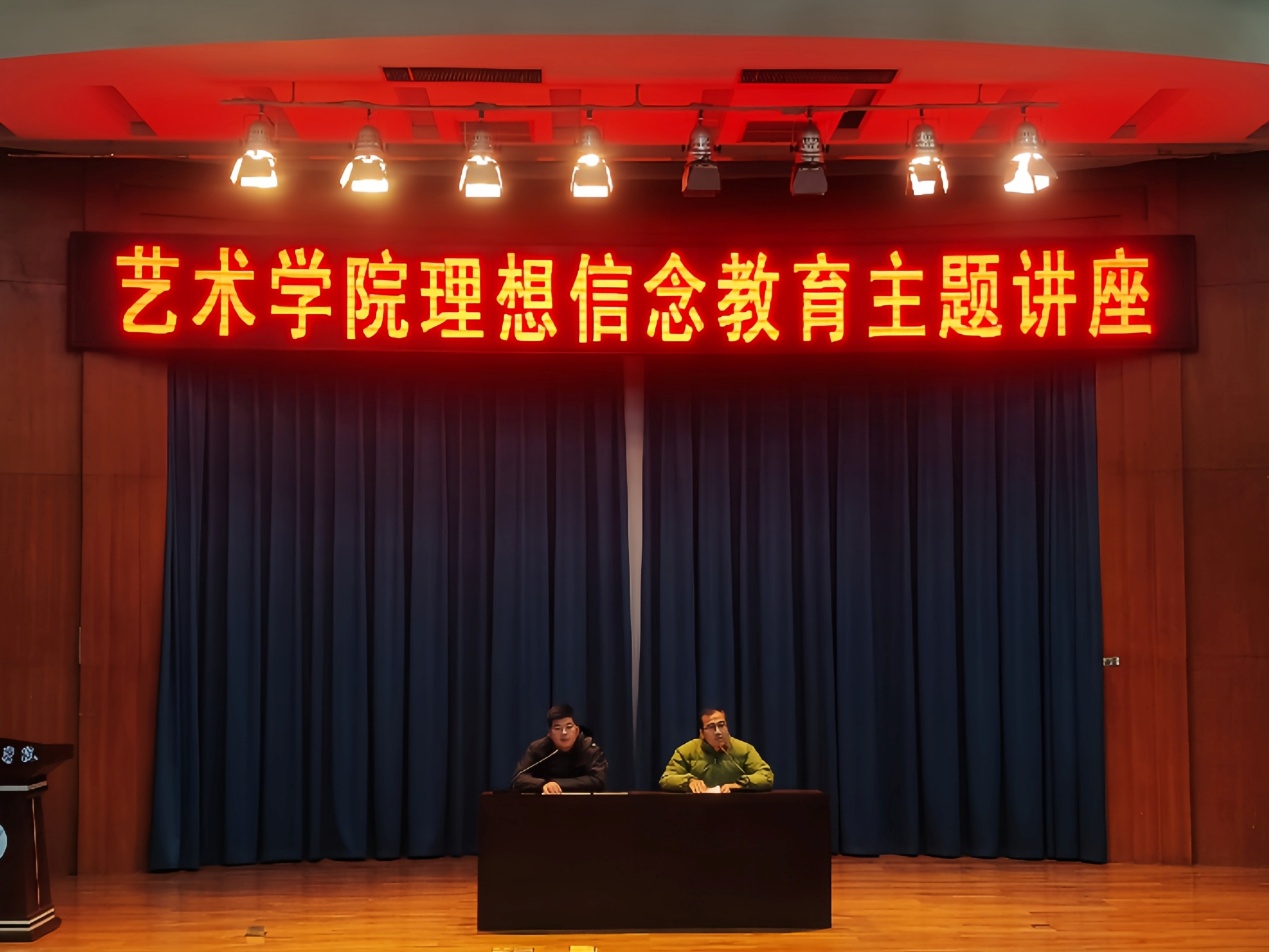 讲座环节,团总支书记韩栋梁以“以艺践初心,青春担使命”为核心开展理想信念教育讲座,紧扣艺术专业特色,从时代需求与青年担当切入,深入阐释艺术工作者的初心使命,引导2025级团员将个人艺术追求融入时代发展浪潮,以专业所学践行美育初心,把理想信念转化为勤学笃实的行动力,在深耕专业中锤炼本领、涵养品格。