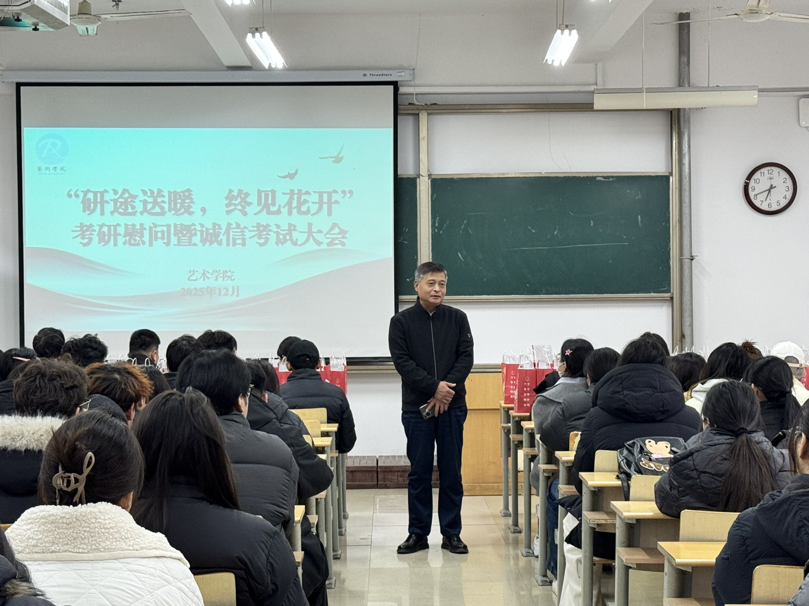 窗外寒风凛冽,室内暖意融融。随着全国硕士研究生招生考试进入最后冲刺阶段,千亿国际qy18vip于2025年12月18日下午,在美术北楼104举办了一场温馨而有力的研究生考前慰问动员活动,为正在备战考研的学子们送去关怀与鼓励。